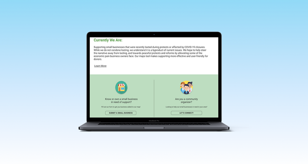 Several things we can look into for future updates are redesigning the map interface to work on our website directly, take donations on the website itself and not link through third-party donation pages, and redesign the business list page to incorporate donations to collectives (by city).